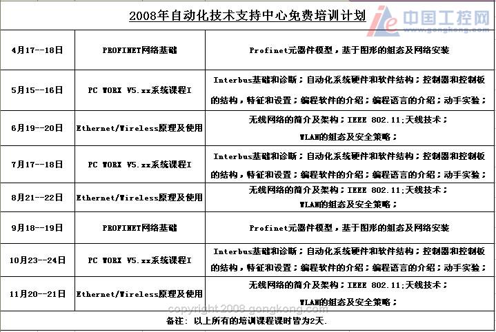 菲尼克斯電氣中國公司2008年自動化技術支持中心免費培訓計劃