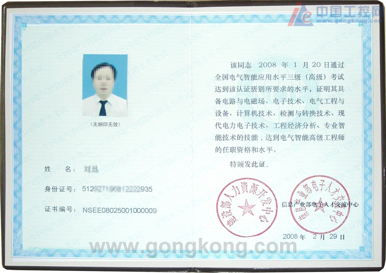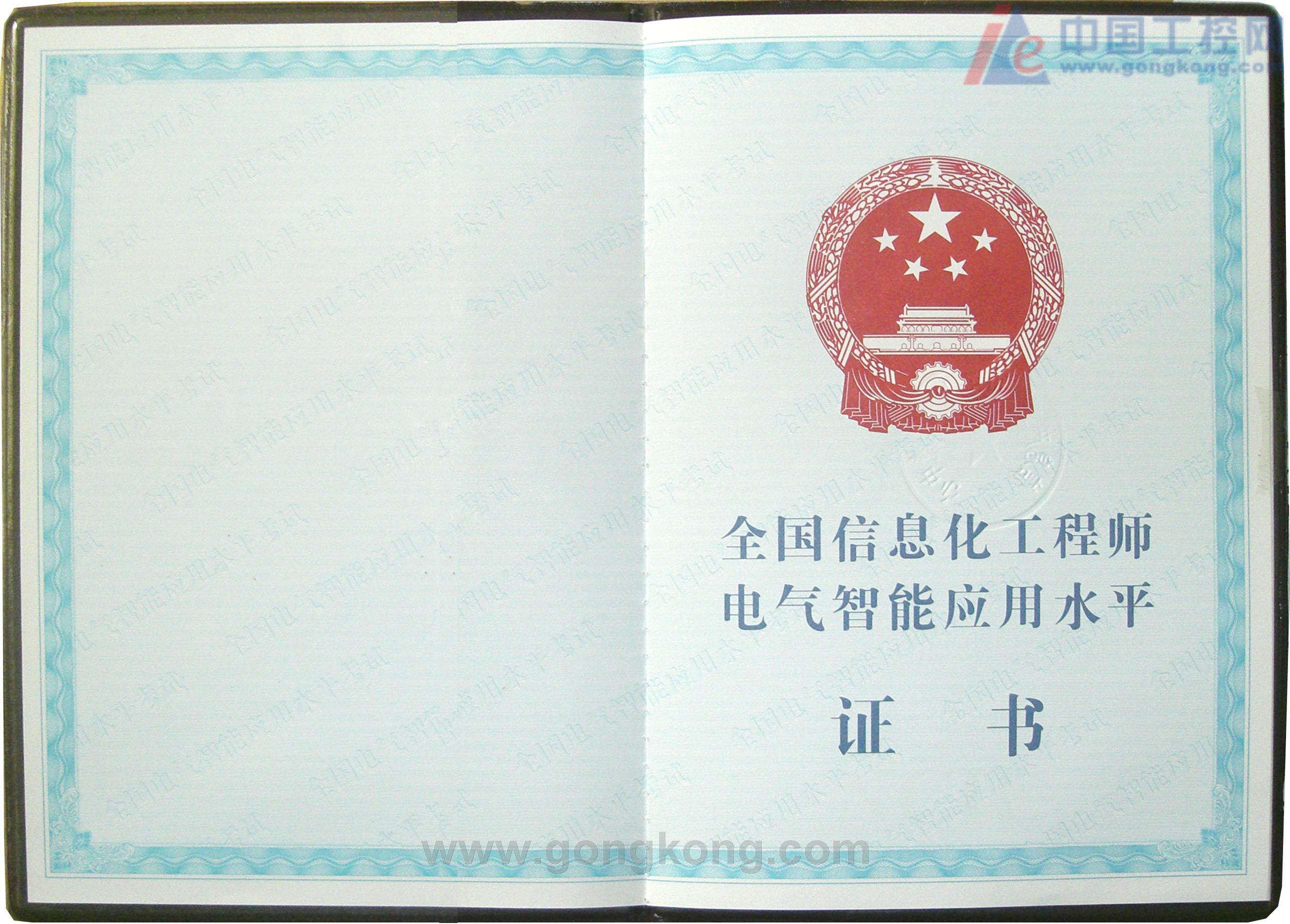 本證書是信息產業部、建設部聯合頒發的權威認證,通過全國電氣智能應用水平考試相應級別的學員,成績合格可獲得信息產業部電子人才交流中心和建設部印制并頒發的證書和成績單。