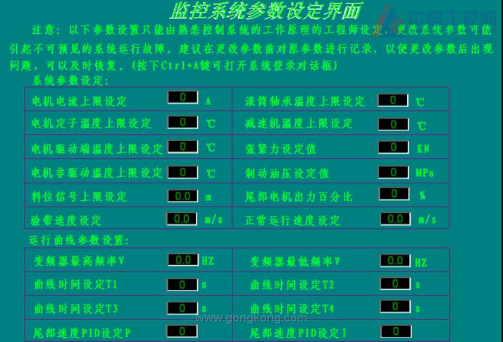 大連水泥集團石灰石曲線帶式輸送機參數設定畫面