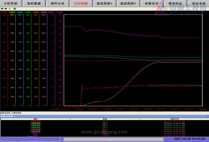 大連水泥集團石灰石曲線帶式輸送機運行趨勢畫面