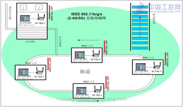 運輸環(huán)節(jié)中,RGV或AGV小車需實時的將本身的情況報告中控室主控計算機 因此,無線通訊系統(tǒng)就成為運輸環(huán)節(jié)閉環(huán)控制系統(tǒng)的一個重要組成部分。