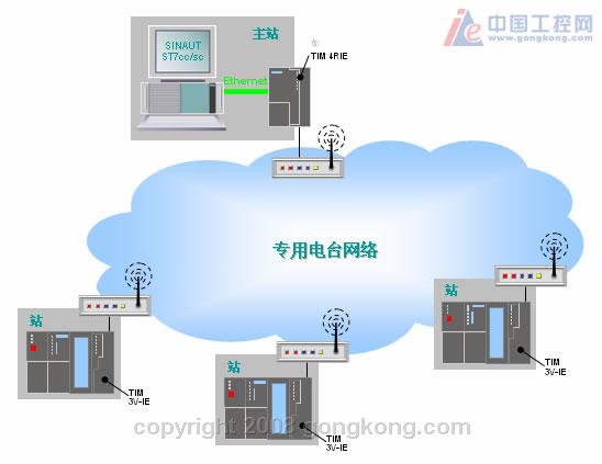 所有過程站都使用一臺 SIMATIC PLC 從本地進行控制。遠程監視和控制是通過 SINAUT TIM 模塊和串行連接的無線設備完成的。遠程控制主站通過無線系統以輪詢方式對所有站進行掃描,修改后的生產數據被發送到控制中心。中央 TIM 模塊從GPS 接收器接收時間,并使用該時間將整個 SINAUT 系統同步。通過 SINAUT ST7cc 程序包,所有數據均可供控制中心系統使用。操作員可以對每個過程站進行跟蹤,或者使用控制命令來干預局部過程。