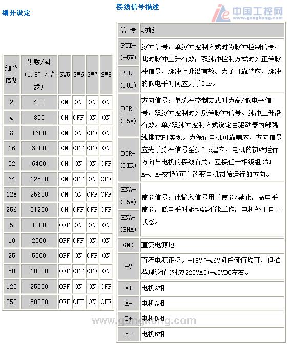 M535是采用美國先進技術生產的細分型高性能步進驅動器(M = Microstep),適合驅動中小型的任何3.5A相電流以下的兩相或四相混合式步進電機(4,6,8線均可)。電流控制采用先進的雙極性等角度恒力矩技術,比瀕臨淘汰的單極性技術(6根性接法)可產生更大的力矩和功率,國外教材一般認為雙極性控制可在同等尺寸的電機上提高力矩輸出達30%。由于采用國外先進技術,比國內同類產品電流波紋小,電機發熱小,高速力矩大。其細分功能使步進電機運轉精度提高,振動減小,噪聲降低。此驅動器還具有其它許多理想特點,例如:單電源供電、光隔離輸入、細分精度可選等。每秒兩萬次的斬波頻率,可以消除驅動器中的斬波噪聲。另一有用的功能是靜止自動減流,從而減少電機和驅動器的發熱。在驅動器的側邊裝有一排撥碼開關組,可以用來選擇細分精度,以及設置動態工作電流(8等級)和靜態工作電流。當過壓或過流時,驅動器指示燈由亮變紅,清除保護狀態,需解除過壓或過流條件,重新上電,驅動器指示燈變綠才能正常工作。