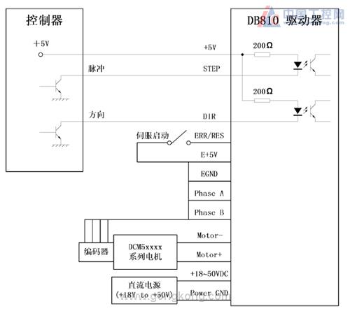 圖7 DB810驅(qū)動器與DCM5xxxx系列電機的接線圖