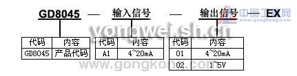 代碼是指明信號輸入或輸出的量程范圍,用戶訂貨時可自由選定(見選型譜)。