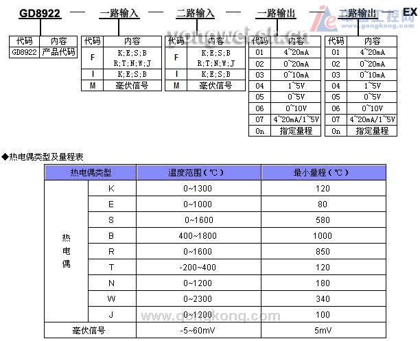 訂貨代碼為:GD8922-2IK-01-01-EX (K 0~1300℃)