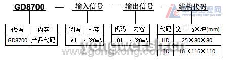 型號規格(代碼):代碼是指明信號輸入或輸出的量程范圍,用戶訂貨時可自由選定(見選型譜)