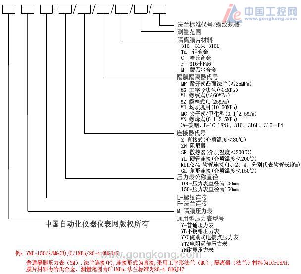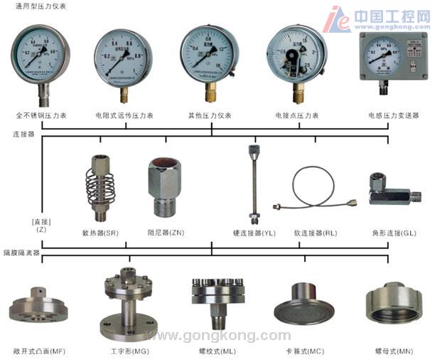 為了擴大各種通用型壓力儀表的使用范圍,能適用于測量強腐蝕、高溫、高粘度、易結晶、易凝固和有固體浮游物介質的壓力,以及對某些測量介質不能直接進入通用型儀表內和便于清洗防止沉淀物質積聚的場合的壓力檢測時,必須采用由隔膜隔離器與通用型壓力儀表組成一個系統的隔膜表。