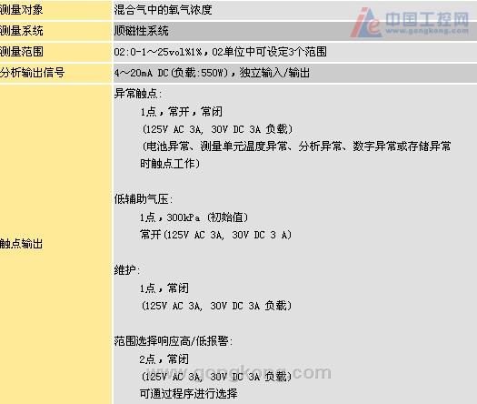 清晰顯示電池異常、分析異常、溫度異常等五種異常,從而迅速采取合理措施。當(dāng)輔助氣壓低至預(yù)設(shè)值時(shí),觸點(diǎn)將工作。
