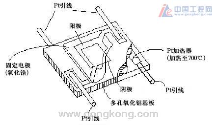 氧化鋯固體電解質中有電流通過會使氧氣從陰極向陽極移動(起氧氣泵的作用)。如果陰極處的氧氣流受到氧化鋁基板的限制,就會形成一個電流飽和區,無論電壓如何增加,電流都維持相同值。這個電流被稱為臨界電流。在一定電壓范圍內,電流與氧氣濃度成正比。